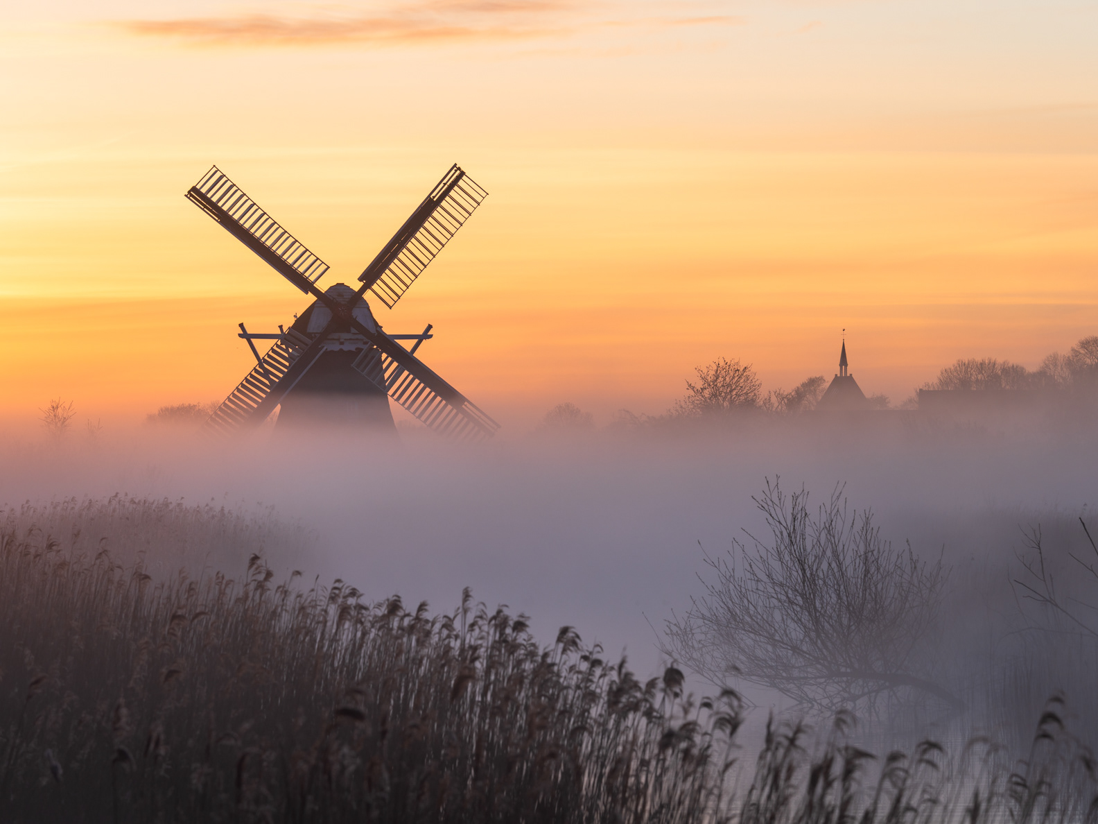 The countryside near Groningen city, with a lot of windmills.